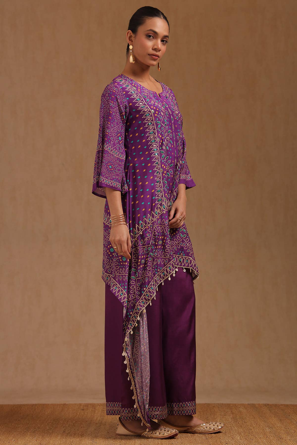 Step into effortless elegance with our Purple Muslin Bandhani Print Co-Ord Set, adorned with delicate hand mirror work that adds just the right amount of sparkle. Crafted in soft and breathable muslin fabric, this ensemble features a vibrant Bandhani-inspired print in regal purple hues, giving it a festive yet contemporary charm.